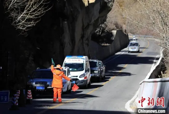 圖為護(hù)路期間,道班工人引導(dǎo)往來車輛。中新社記者 王磊 攝