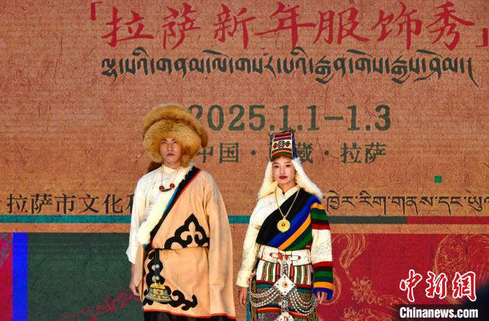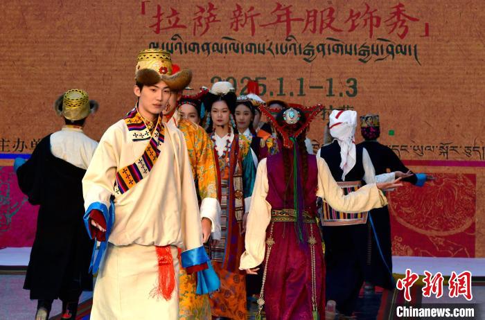 1月1日,西藏拉薩市文化和旅游局舉辦“繁飾自然·衣彩拉薩”新年服飾秀開幕大秀,通過拉薩代表性傳統(tǒng)服飾秀、少兒服飾秀、西藏元素創(chuàng)新服飾秀三部分展現藏地風情的同時,展現拉薩傳統(tǒng)與現代服飾文化的風采。圖為拉薩新年服飾秀現場。中新社記者 李林 攝