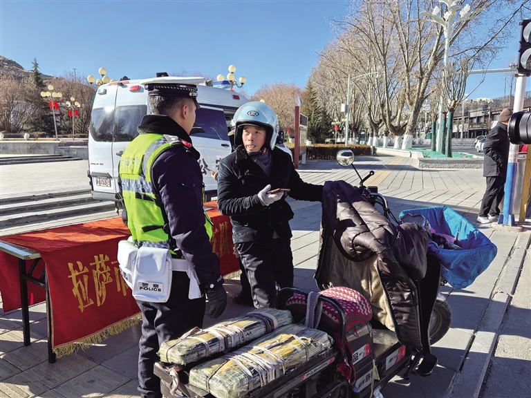 檢查過程中,民警還在部分重要交通路口和人員密集區(qū)域設(shè)立交通安全宣傳點位,搭建展板,向過往的市民和電動車駕駛者告知超標(biāo)電動車禁止上路的原因,講解超標(biāo)電動車退市處理相關(guān)流程,讓廣大市民群眾更直觀地了解騎乘超標(biāo)電動車出現(xiàn)交通事故的嚴(yán)重后果,強調(diào)遵守交通法規(guī)和佩戴安全頭盔等行為的重要性。拉薩市民曲女士告訴記者:“聽了交警宣講的交通安全知識,我覺得很有意義,以后我會自覺遵守交通規(guī)則,確保出行安全。”