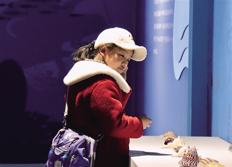 “我從沒一次性見過這么多貝殼,太漂亮了?!笔忻袂溥呎f邊用手指輕輕觸碰著允許觸碰的各類海洋貝殼,細(xì)細(xì)感受著貝類的紋理和質(zhì)地。“這次展覽不僅讓我增長了見識(shí),還讓我對(duì)海洋生物產(chǎn)生了更濃厚的興趣,這周末我要帶朋友一起再來看看。”