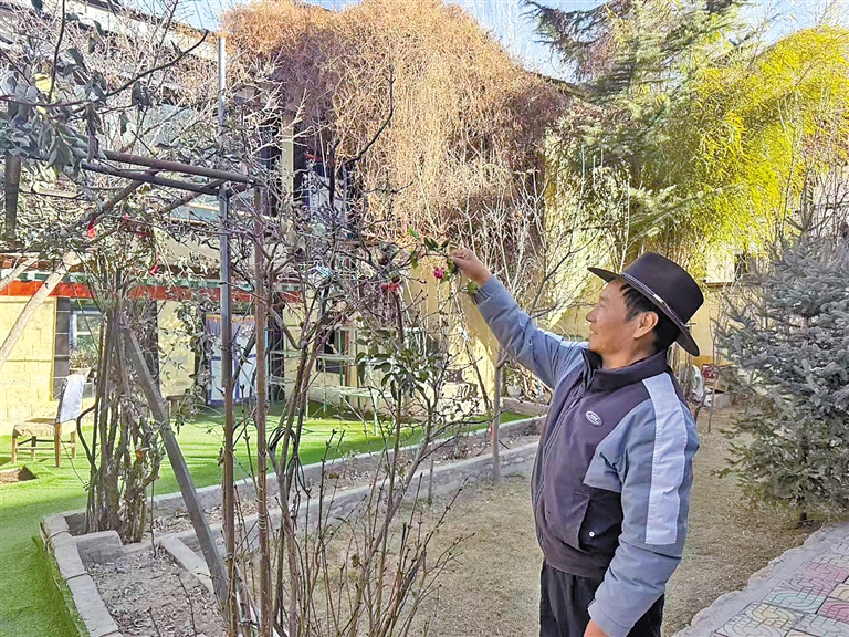 拉薩市城關(guān)區(qū)慈覺(jué)林村村民次頓珠在清理院子里的月季樹(shù)枝。記者 文鳳 攝