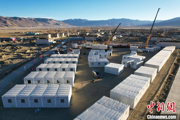 圖為1月10日,西藏定日6.8級地震后,定日縣長所鄉(xiāng)正進行施工組裝安置板房。記者 江飛波 攝