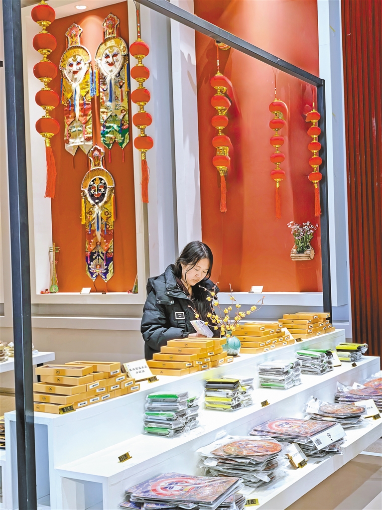 2月2日,消費者在西藏博物館選購文創(chuàng)產品。