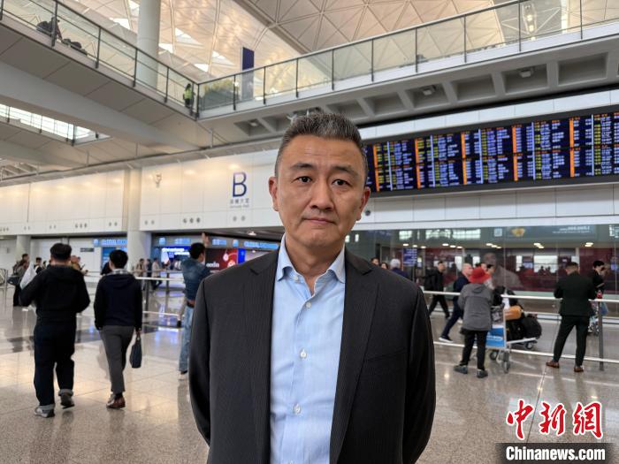 2月19日,西藏航空“拉薩-成都天府-香港”航線開通。圖為西藏航空副總經(jīng)理張兵兵在香港國際機場抵港大堂接受中新社記者采訪。中新社記者 韓星童 攝