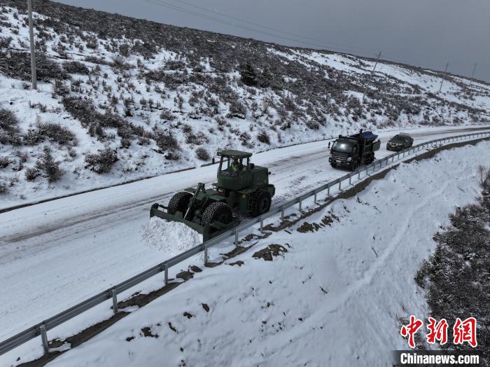 據(jù)了解,災(zāi)情發(fā)生后,擔(dān)負該路段養(yǎng)護保通任務(wù)的武警第二機動總隊某支隊官兵迅速啟動道路除雪保通預(yù)案,抽組專業(yè)救援力量及大型救援裝備趕赴受阻路段實施搶通。受阻路段平均海拔處于4000米以上,持續(xù)降雪不斷,官兵們首先對滯留人員進行安撫,并發(fā)放食物和藥品等救援物資,為盡快清理路面積雪,官兵采取“機械協(xié)同先通后擴、人機配合高效救援”的方式同步展開作業(yè)。期間,一輛重載半掛車不慎陷入邊溝中,指揮員果斷調(diào)整方案,封控現(xiàn)場、撒布融雪劑、清理四周積雪、鋼絲繩牽引等步驟緊張有序的進行中……伴隨著發(fā)動機的轟鳴聲,車輛被成功救出。