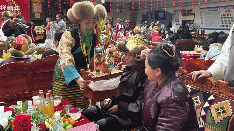 拉薩市社會福利院工作人員白央告訴記者,藏歷新年前一周,她們就為老人們洗澡、修剪指甲,對福利院進行全面大掃除。為營造節(jié)日氛圍,還提前為老人裝扮居住環(huán)境,掛上紅燈籠,擺上切瑪盒等?!斑@是我在福利院工作的第二年。藏歷新年雖不能陪伴在父母身邊,但與老人們一同過年,讓我深感幸福且意義重大。”