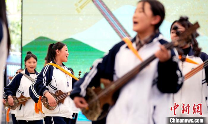 圖為4月19日,第二屆“拉薩春日書會(huì)”暨拉薩市全民閱讀推廣周系列活動(dòng)開幕式上的扎念琴?gòu)棾?。李?攝
