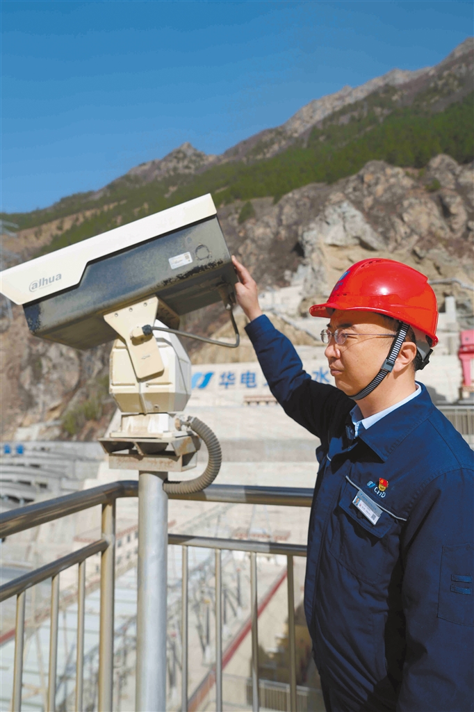 圖為楊立勇對(duì)DG水電站工業(yè)監(jiān)控?cái)z像頭進(jìn)行檢查(資料照片)。