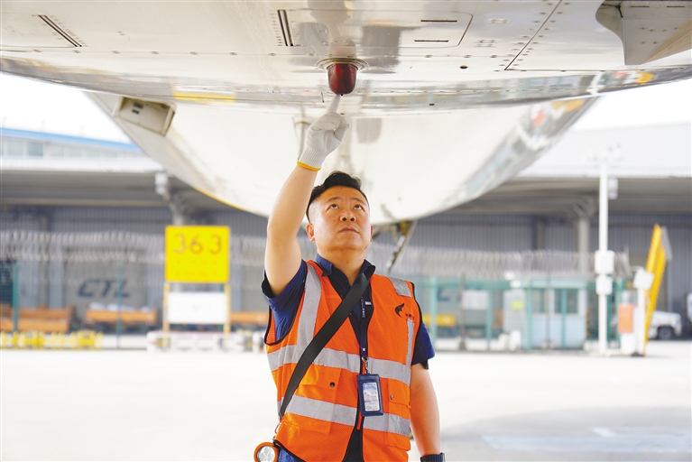 “因為我的家鄉(xiāng)挨著機場,從小就看著飛機起起落落。后來知道有飛機維修這個行業(yè),覺得能親手保障每一架飛機的安全飛行,是件多么有意義的事情,就一頭扎進了這個行業(yè)。”談及與飛機維修的緣分,何濤眼中閃著光。