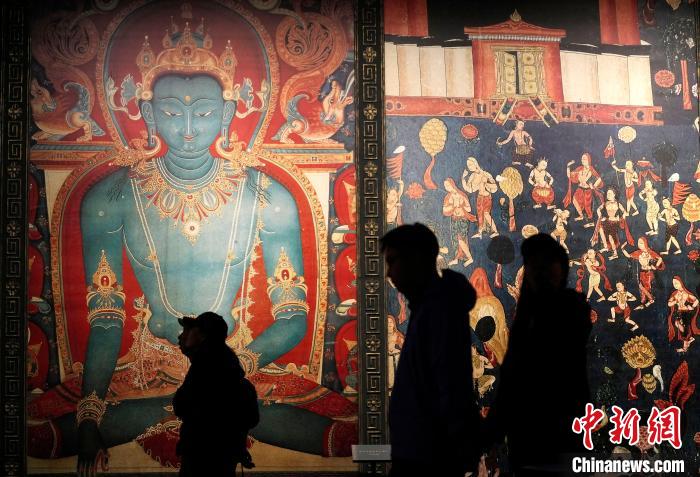 5月18日是第49個國際博物館日,今年的主題是“快速變化社會中的博物館未來”,西藏博物館迎來參觀熱潮。圖為觀眾正在欣賞展陳的八思巴肖像唐卡。中新社記者 李林 攝