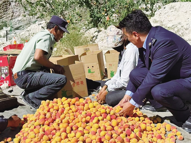 七月的底雅鄉(xiāng),昆侖山的融雪順著溝壑淌進果園,滋潤著枝頭累累碩果。阿里地區(qū)稅務(wù)局駐丁固村工作隊將紅色宣傳旗插在鄰村什布奇村的杏林邊,與金燦燦的果實相映成趣。駐村隊員們和村民們一同蹲在田埂上,他們圍繞特色林果業(yè)發(fā)展這一主題,用通俗易懂的方式講解稅費政策,讓村民們聽得懂、記得住、用得上。