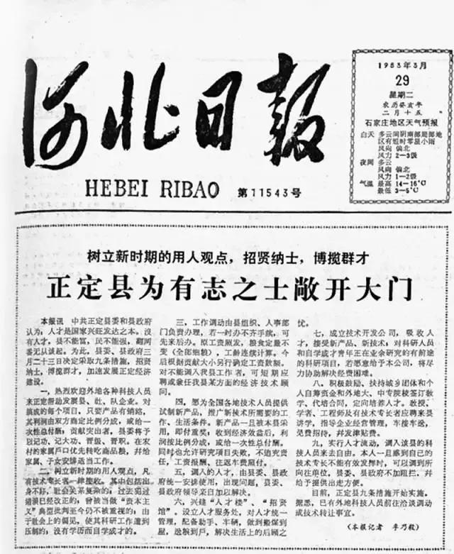 尊重人才,方能發(fā)展,這是蘋樂集團(tuán)一直贊許的信條。這樣的道理,蘋樂集團(tuán)董事長李建軍早在開廠的時候就有所耳聞了。1983年,他的事業(yè)才剛剛起步,有一天,他在報(bào)紙上看到了一則報(bào)道,名為《正定縣為有志之士敞開大門》,里面說,凡是來正定的科技人員,都可以享受9個待遇,比如每搞成一個項(xiàng)目,利潤按比例分成或付一次性總報(bào)酬;為調(diào)入人才建“人才樓”“招賢館”等。這種大膽招攬人才的做法,讓他很受震動,也促成他來到正定這個不知名的小縣城創(chuàng)業(yè)。這則報(bào)道真正的起草者,正是時任正定縣委書記的習(xí)近平。
