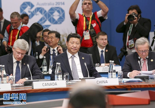 2014年11月15日,國(guó)家主席習(xí)近平出席在澳大利亞布里斯班舉行的二十國(guó)集團(tuán)領(lǐng)導(dǎo)人第九次峰會(huì),并在第一階段會(huì)議上作了題為《推動(dòng)創(chuàng)新發(fā)展 實(shí)現(xiàn)聯(lián)動(dòng)增長(zhǎng)》的重要發(fā)言。