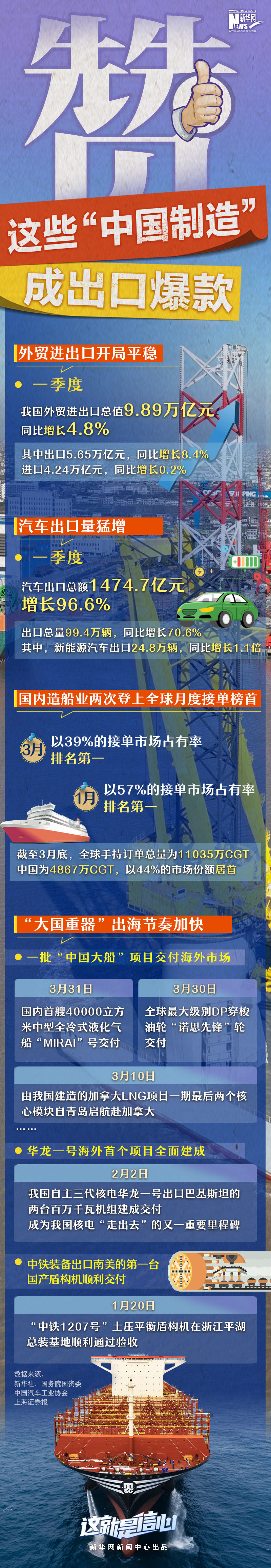 制造業(yè)是實體經(jīng)濟的重要組成部分。一季度,我國汽車、造船等制造業(yè)細分領(lǐng)域出海步伐加快,成績表現(xiàn)搶眼。