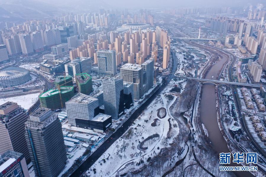 受北方冷空氣影響,11月20日夜間,青海省東北部出現(xiàn)降雪、降溫天氣過(guò)程。雪后從空中俯瞰,高原古城西寧被白雪覆蓋。