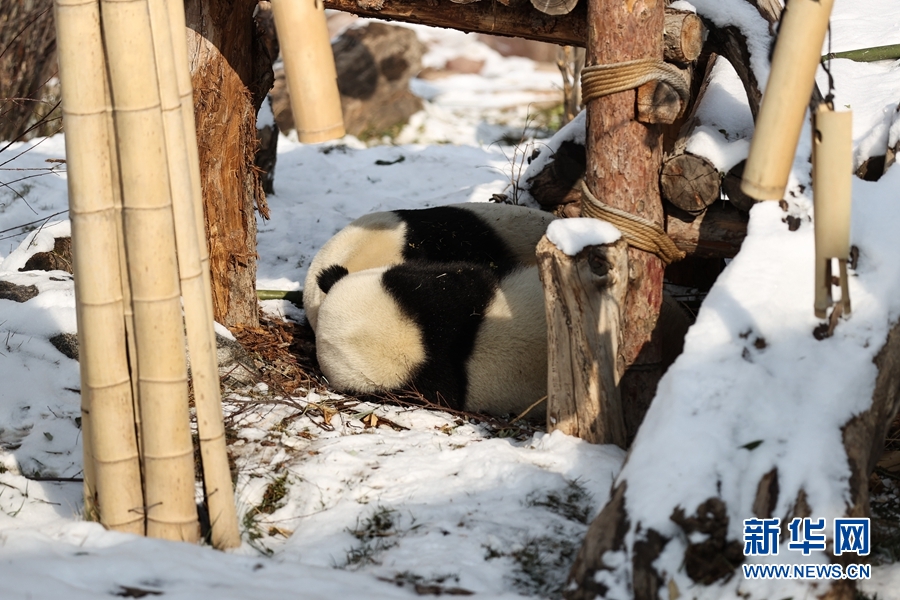 近日,受冷空氣影響,青海省西寧市迎來(lái)降雪。西寧熊貓館的四只大熊貓?jiān)谘┨炖锵硎苤灾褡?、“打盹兒”的?lè)趣。[詳細(xì)]