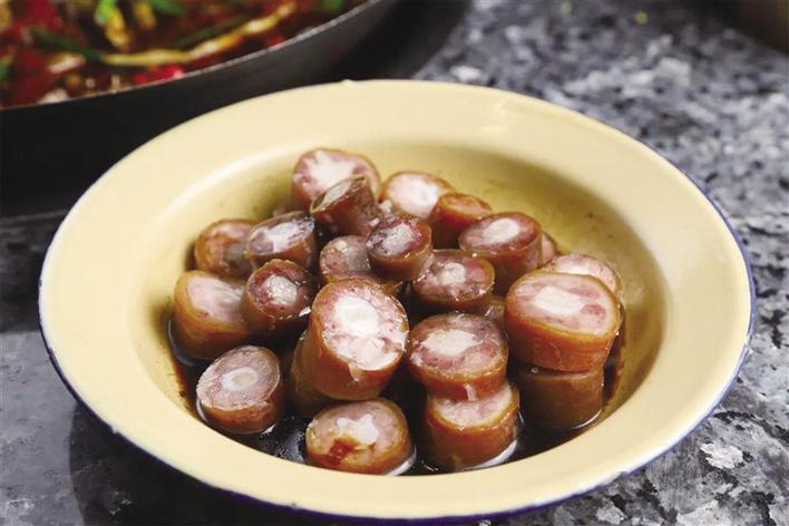 12月9日晚,記者和品鑒團成員們來到外婆怪味雞餐廳。走進店內,一股懷舊風撲面而來——擺滿食材的木架、古式的燈罩、茅草屋、實木桌椅,讓人仿佛置身于農(nóng)家小院。該餐廳就餐區(qū)分為一樓大廳食材展示區(qū)、二樓大廳用餐區(qū)以及包間區(qū),每層樓都各有特色,環(huán)境十分雅致。“非常喜歡這家店的裝修風格,店里布置的實木亭、老式電視、音箱以及那些高高掛起的腌臘肉都讓我感覺非常親切,也讓我想起了小時候在四川老家生活的時光?!逼疯b團成員李女士說。