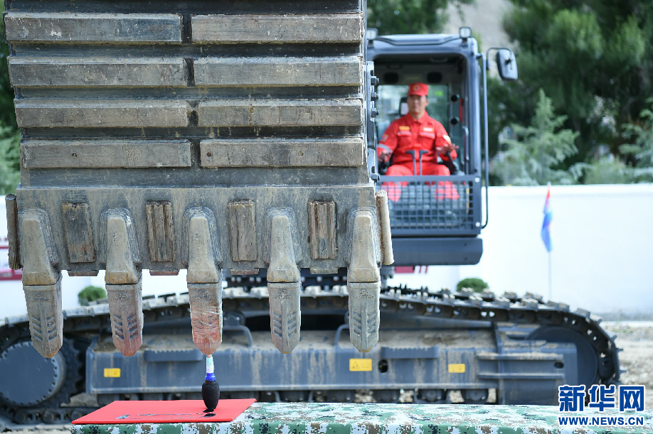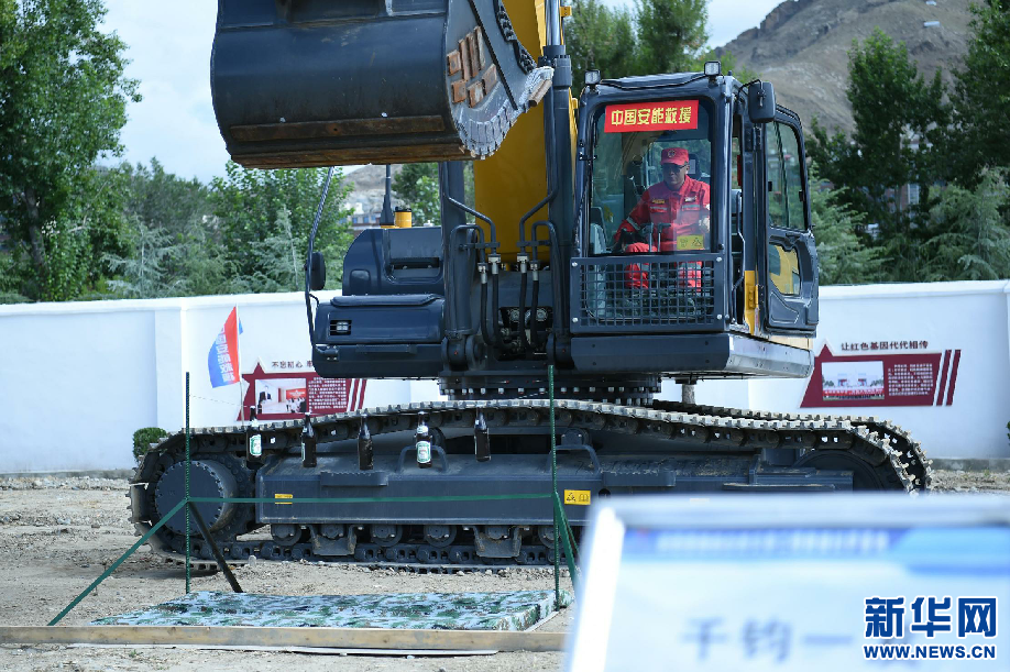 8月5日,工作人員在拉薩基地演示應(yīng)急搶險動態(tài)精準科目—“挖掘機寫字”。新華網(wǎng) 旦增努布 攝