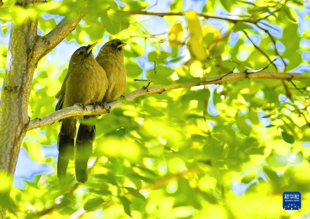 槐樹上的山噪鹛(9月21日攝)。新華社記者 張汝鋒 攝