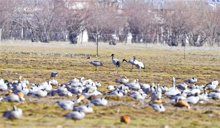 近年來,西藏多措并舉實施生態(tài)建設工程,黑頸鶴數(shù)量逐年遞增,目前西藏黑頸鶴數(shù)量超過萬只,每年到拉薩市林周縣越冬的黑頸鶴有2000只左右。