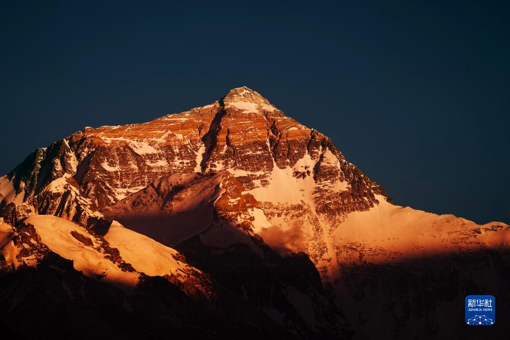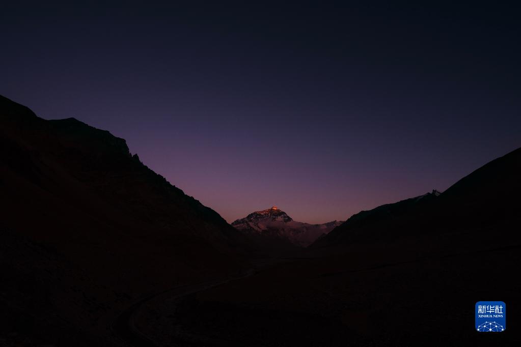 6月4日拍攝的太陽(yáng)完全落山之后的珠峰。新華社記者 費(fèi)茂華 攝