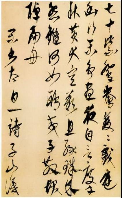 其草書豎幅《李白古風(fēng)詩卷》,縱35.0cm,橫63.8cm,現(xiàn)藏日本東京國立博物館。書風(fēng)勁健清新,善以懸腕作書,行筆爽利干脆,結(jié)體縱長,流暢而不浮滑,但是往往在最后一筆用力一挑或一頓,難免顯得有些刻露。在當(dāng)時(shí)世趨趙孟頫書風(fēng)的情況下,能走出自己的道路,作為杰出的少數(shù)民族書法家特立于書壇。