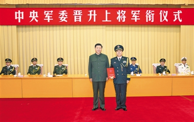 7月29日,中央軍委晉升上將軍銜儀式在北京八一大樓隆重舉行。中央軍委主席習(xí)近平向晉升上將軍銜的火箭軍政治委員徐忠波同志頒發(fā)命令狀。[詳細(xì)] -